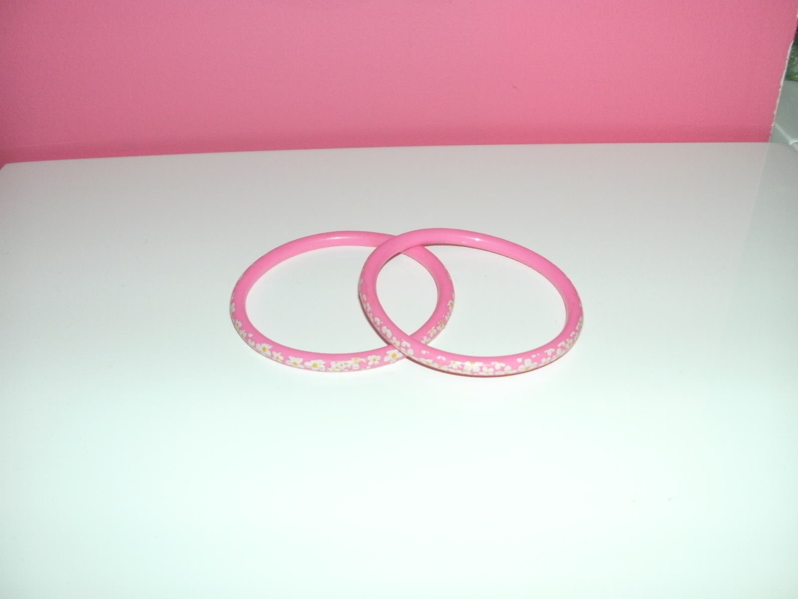 Ref. 736 – Pulseiras “Florzinhas Rosa”, em plástico maleável, o conjunto – 1,2 Patinhas