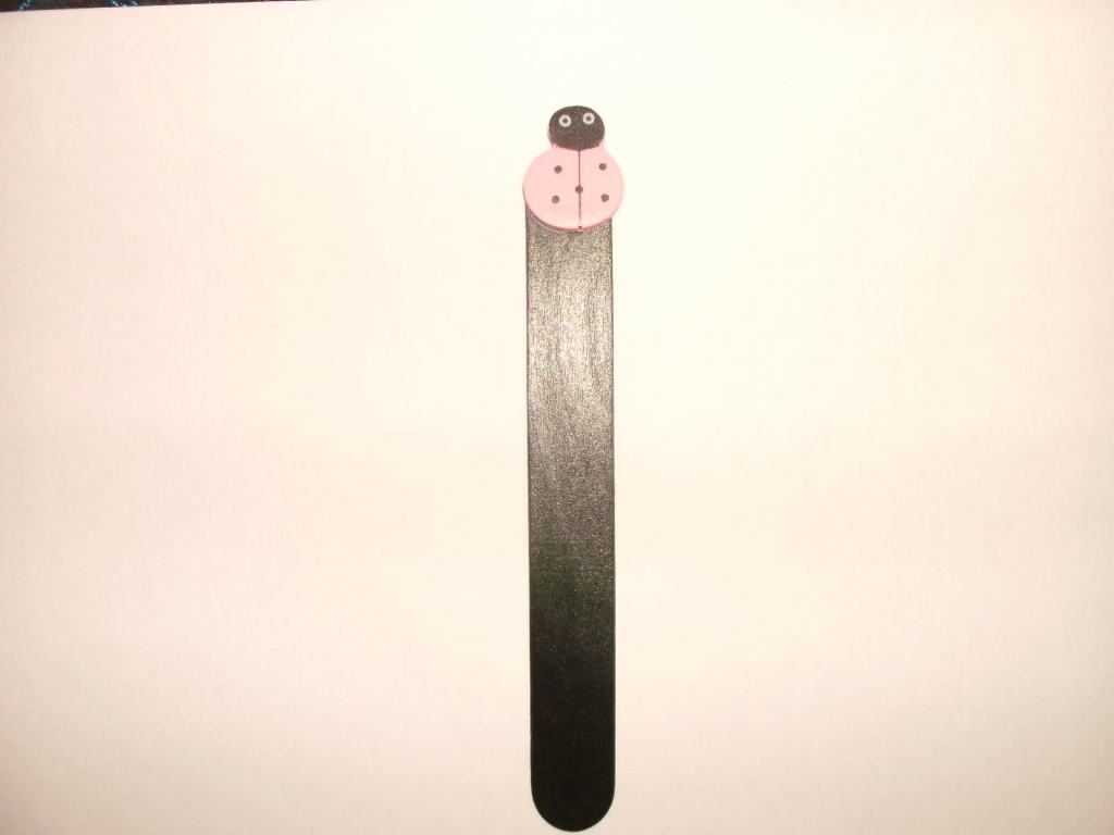 Ref. 1117 – Marcador de livros “Joaninha Rosa”, em madeira, com aplicação – 1,0 Patinha